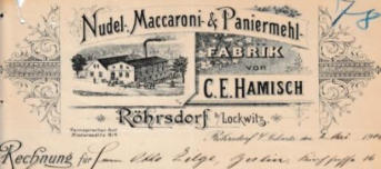 Makkaroni- und Eierteigwarenfabrik C. E. Hamisch gegründet.