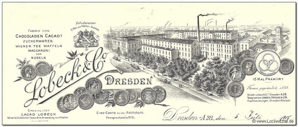 Lobeck`sche Schokoladenfabrik in Dresden, Löbtauer Straße Nr. 63-71 zerstört.